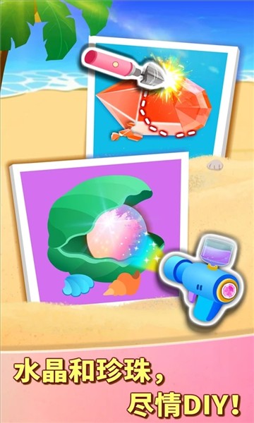 2、前往沙滩场景,点击木箱里的贝壳,收集制作珠宝所需材料。
