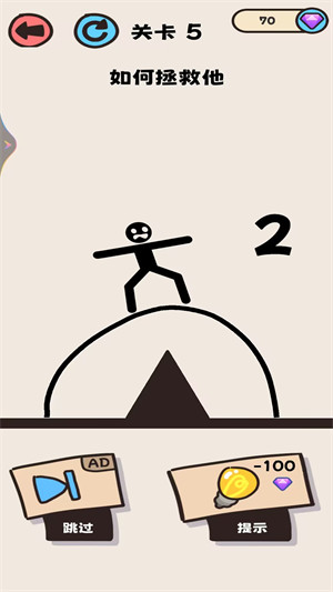 - 绘制一条连续的线条即可完成任务,在绘制线条时,玩家需要注意线条不要越过需要保护的火柴人,否则火柴人会受到伤害。