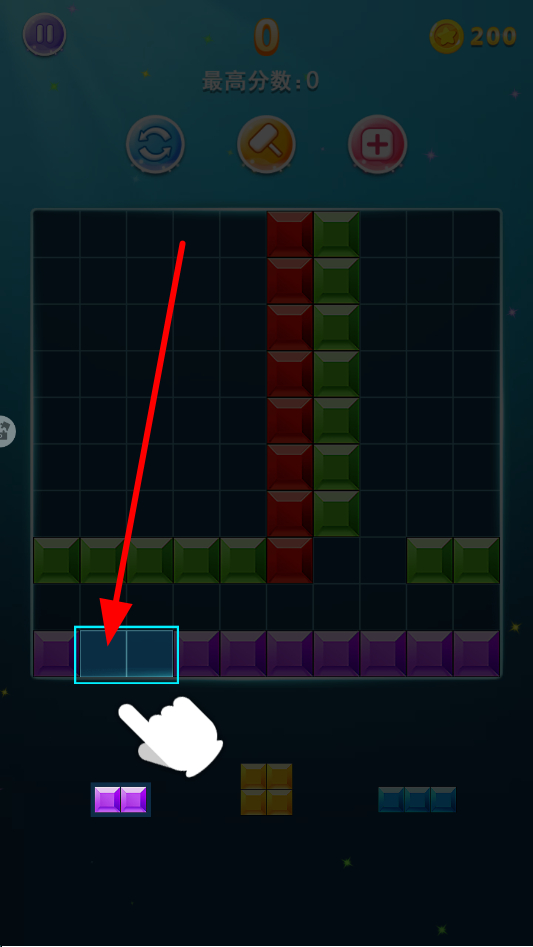 2、在方格区域,玩家可以拖动不同形状的方块,将其放置到合适位置,尽量让方块拼接更紧密,为后续消除创造有利条件。