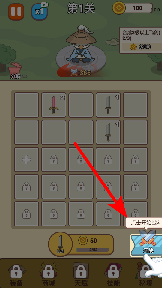 4、完成飞剑养成后,点击开战按钮,即可让养成的飞剑参与战斗,在战斗中检验飞剑的战力,不断推进游戏进程。