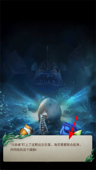 2、剧情阶段会出现任务提示如海灵需要联合起来,跟随提示了解关卡背景,明确后续消除操作的目标如保护远古巨蛋。