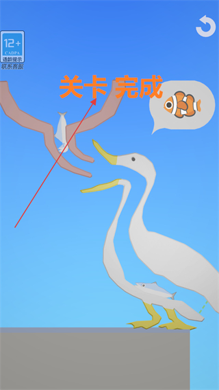 3、鱼完成移动后,界面显示关卡完成提示,本关卡通关。