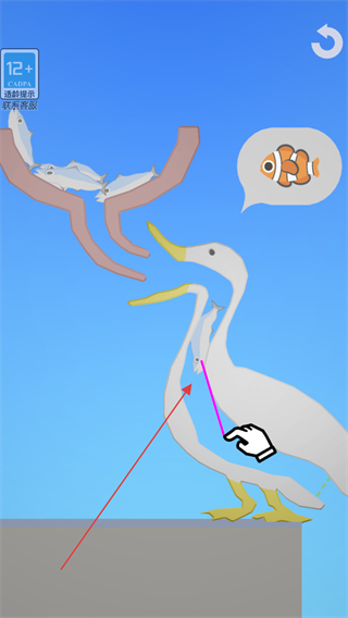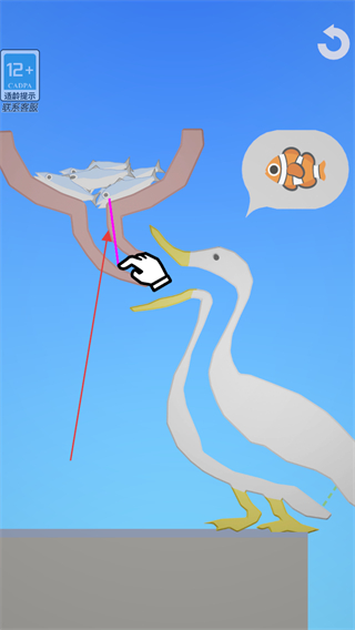 2、管道调整后,鱼会沿路径进入鹈鹕体内,推进游戏进程。