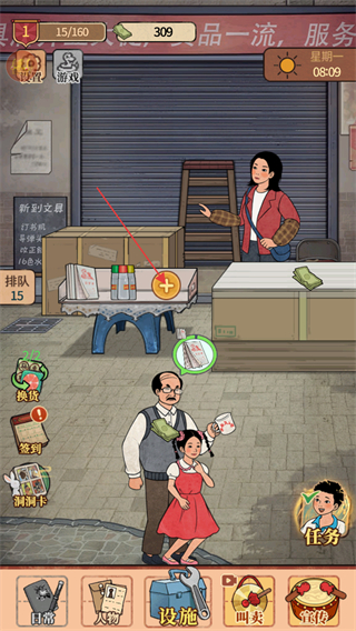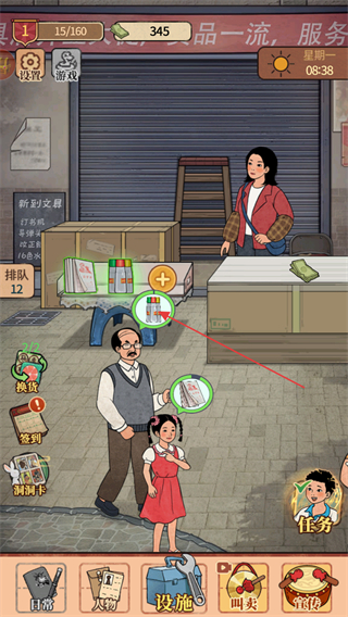 1、开启校园杂货铺基础从摆摊开始做起,需要点击顾客需要的商品进行售卖。
