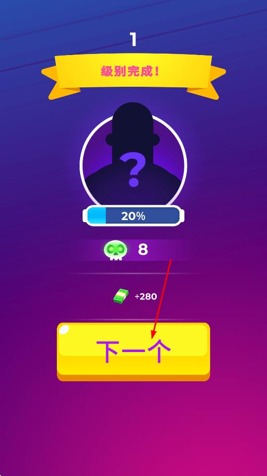4、成功完成关卡后,会弹出结算界面,显示关卡完成信息、获得的奖励等,点击下一个按钮即可进入下一关。