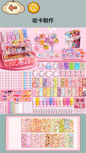 - 拥有大量的素材,包括不同形状的卡片和近百种图案可以选择,让玩家可以自由发挥自己的想象力,制作自己喜欢的咕卡贴纸。