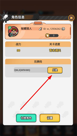 2、进入角色信息界面后,找到兑换码板块,点击板块内的输入框,激活输入状态。