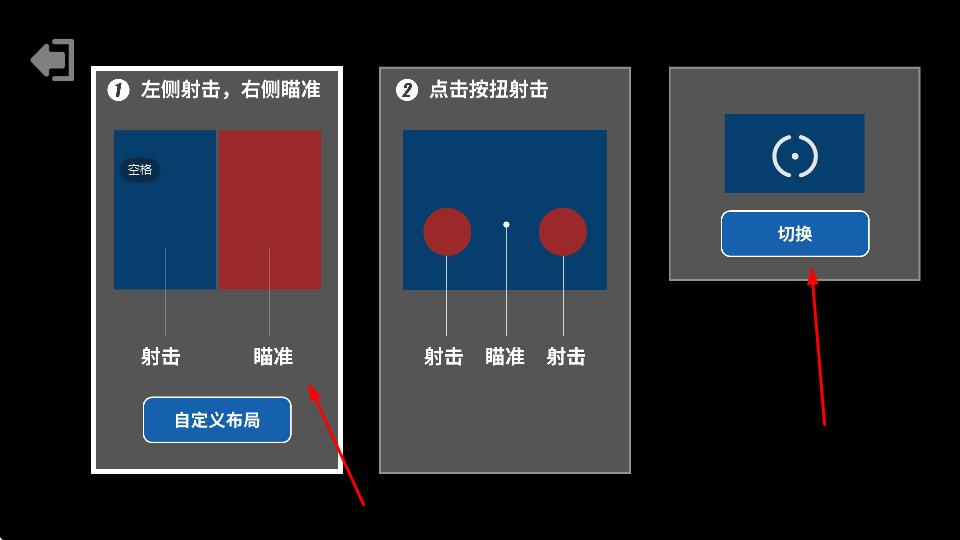 1、进入操作设置界面,可选择左侧射击,右侧瞄准布局,也能点击切换或自定义布局,设置合适的射击与瞄准操作方式。