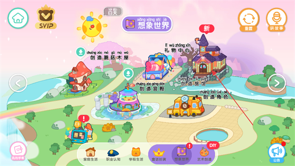 包含学校、医院等多样主题场所,每个场所都有对应的场景元素与互动方式,孩子可自由选择体验,在感受不同场景氛围的同时,积累生活常识与百科知识。