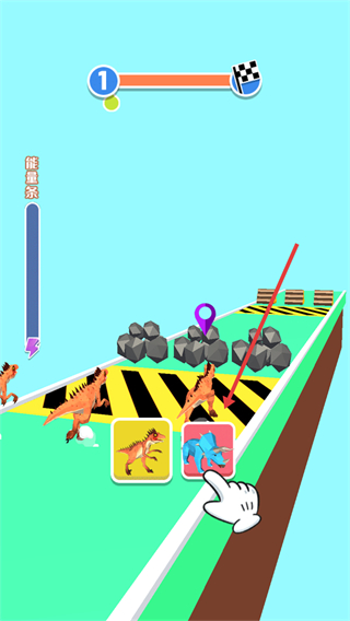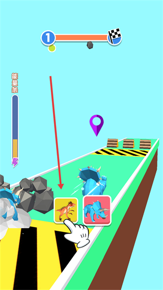 3、突破障碍后,切换成擅长冲刺的恐龙,在平地冲刺。