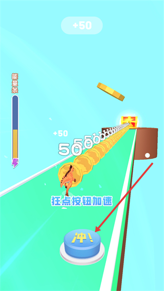 4、狂点冲按钮,让恐龙快速冲刺,获取更多金币和奖励。