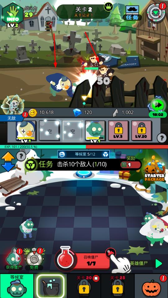 4、在关卡中,操控僵尸与敌人交战,完成如击杀10个敌人等任务。
