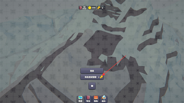 2、看到界面中海岛测试需要一个钥匙的提示后,确认所需道具条件,再选择对应场景按钮来推进场景相关流程。
