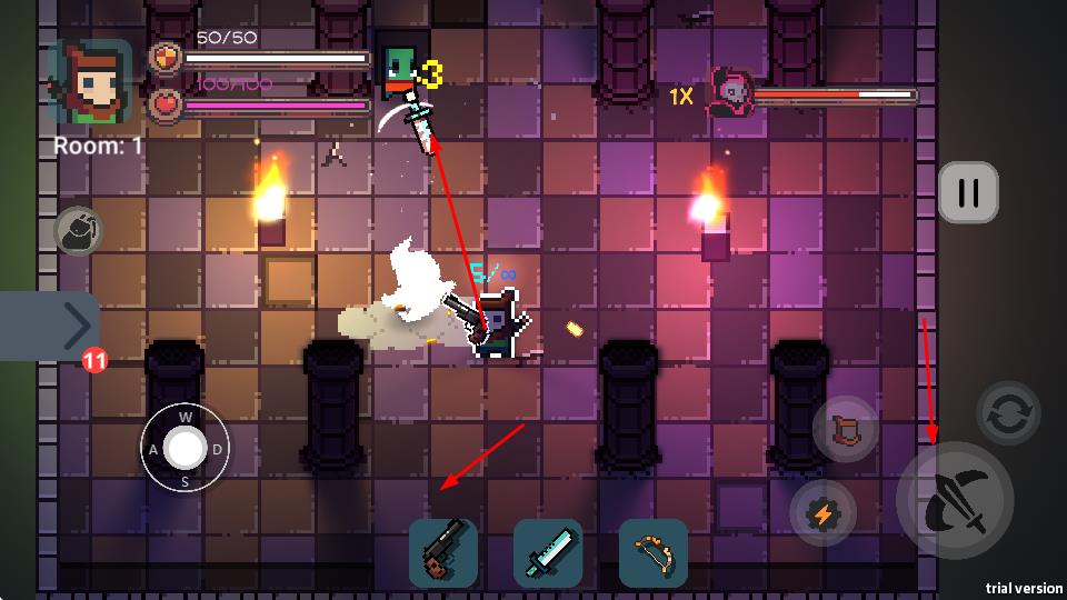 4、进入不同房间后,会遭遇更强敌人,需灵活切换武器,合理运用攻击方式,顺利通关地牢。