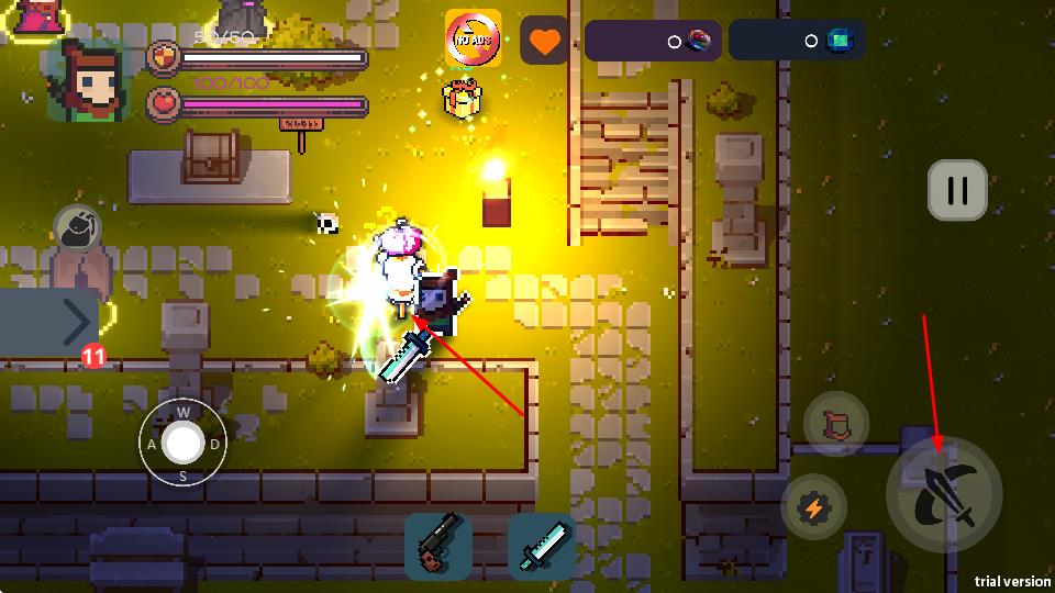 2、点击右侧攻击按钮,使用武器攻击敌人,击败敌人可触发特效,同时有机会获得经验与战利品。