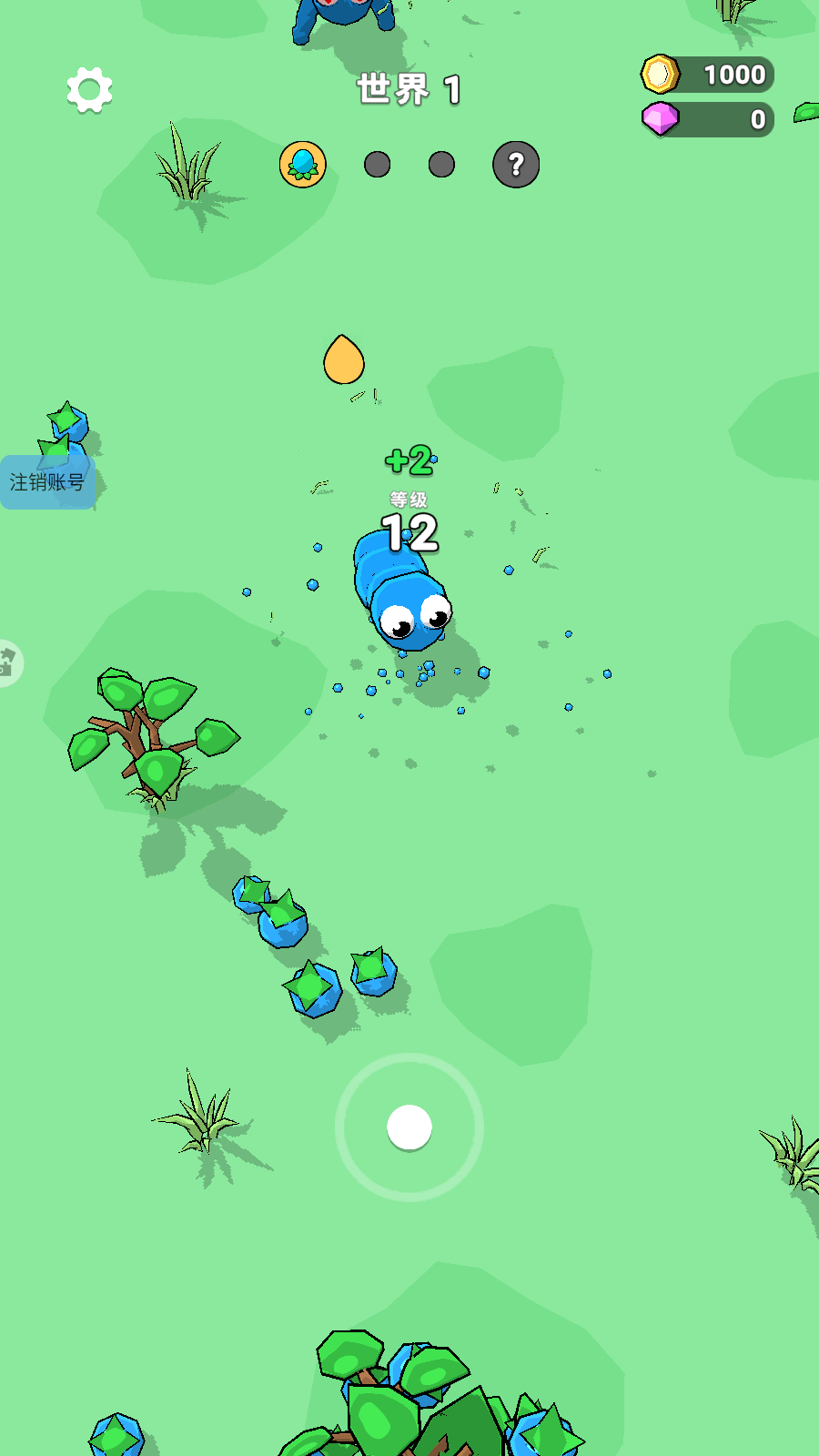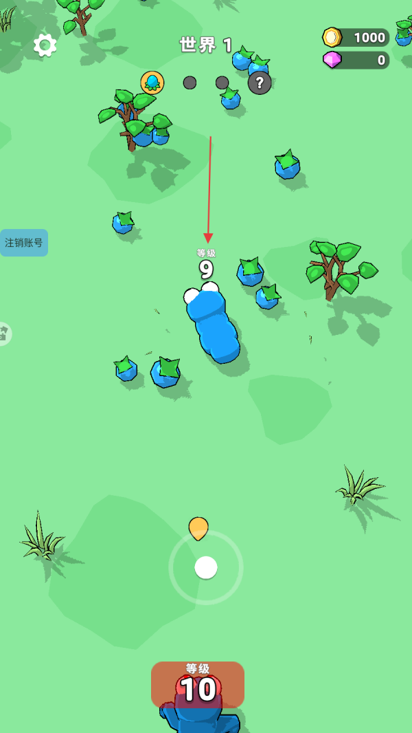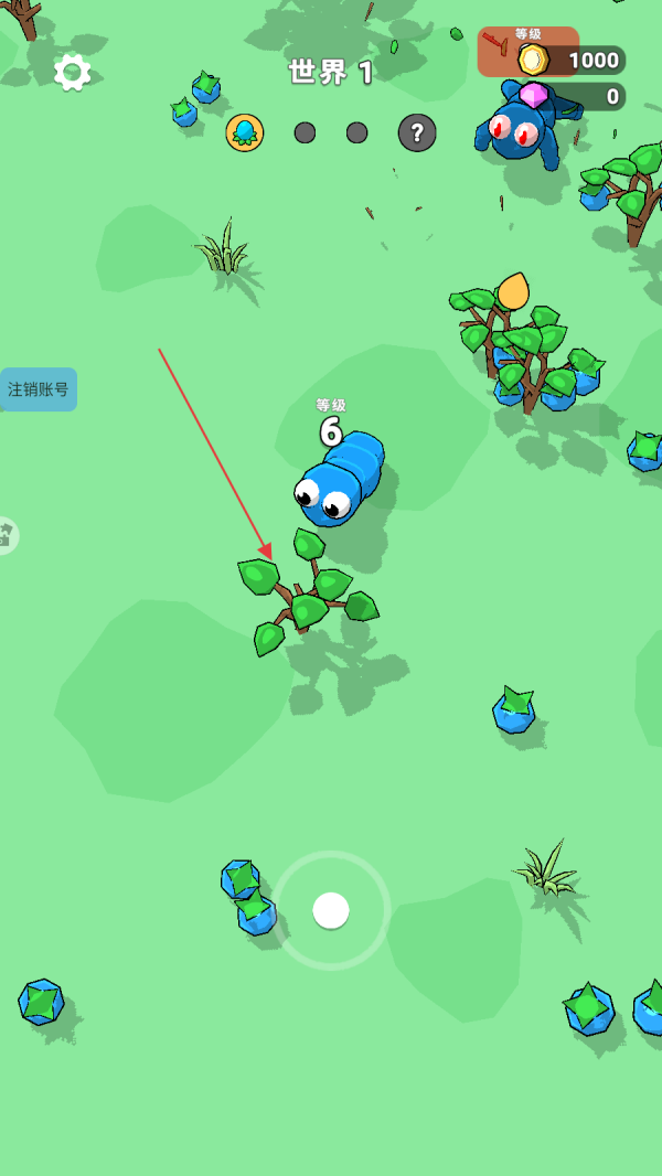 1、操控蓝色生物靠近带有绿叶的植物,让生物进食这些植物,以此提升生物的等级,随着进食次数增加,生物等级会逐步从低等级向高等级提升。