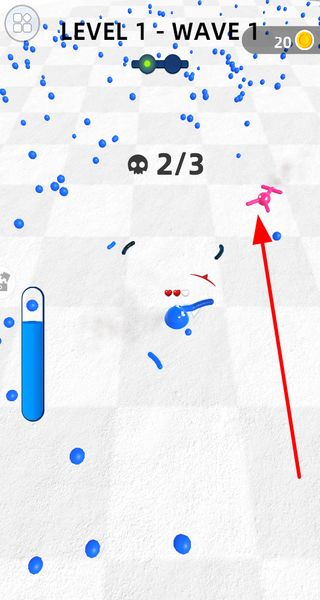 1、按指引滑动画出武器形态,完成造型设置后点击对应按钮,开启当前波次的对战进程。