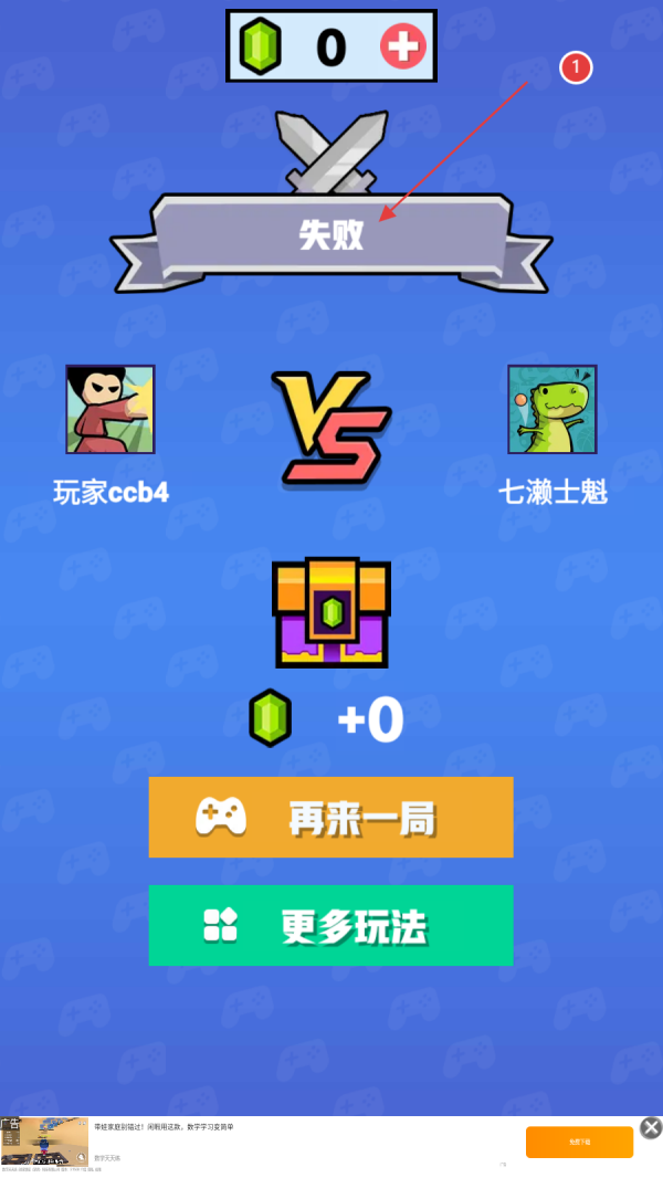 4、若在对战过程中,对手的棋形逐渐占据优势,虽尽力在棋盘不同位置放置圆形符号试图扭转,但最终仍出现失败结算界面,此时可点击“再来一局”重新开始对战。
