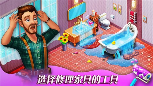 2、房屋装修操作:进入装修界面后,根据房屋当前待改善区域,选择对应的装修项目,消耗消除获得的资源解锁家具、更换墙面颜色或铺设地板,逐步完善房屋设施。
