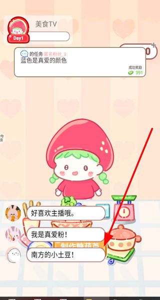 1、玩家进入游戏,开始制作糖葫芦,根据任务要求准备制作,在美食直播的场景中开启糖葫芦制作流程。