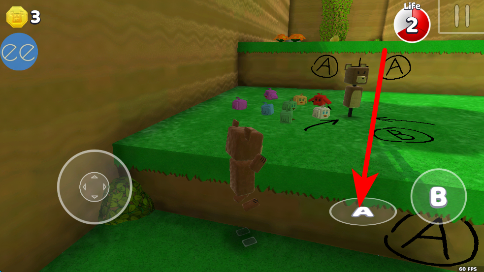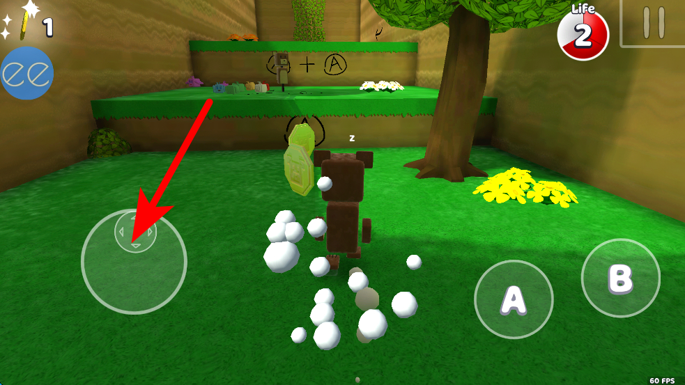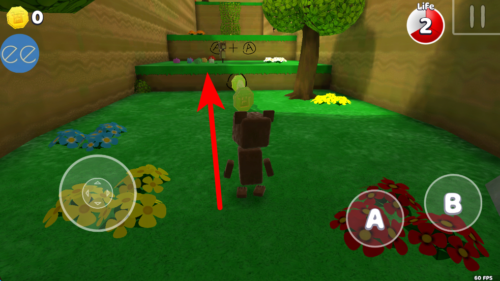 2、当遇到可互动的元素时,点击右侧的A按钮,小熊会做出相应的动作,比如触发机关、收集物品等,推进冒险进程。