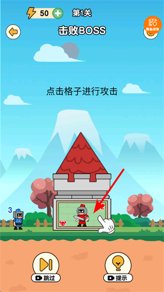 2、在关卡中点击格子可进行攻击,攻击时需瞄准BOSS所在格子,确保攻击命中以削减BOSS血量。