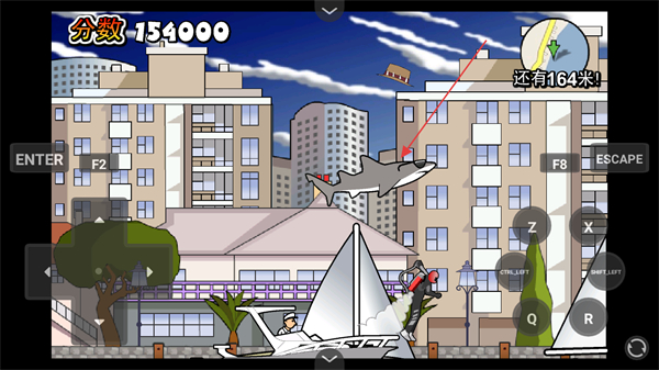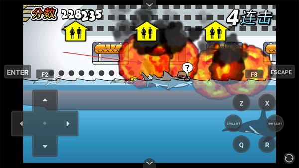 4、点击右边的z键可以控制鲨鱼进行攻击,破坏建筑和器械发生爆炸。