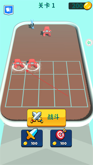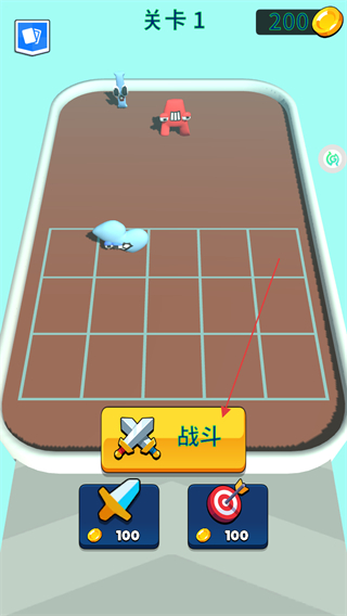 1、在关卡1界面点击战斗按钮,触发与红色敌人的战斗,推进关卡进程。