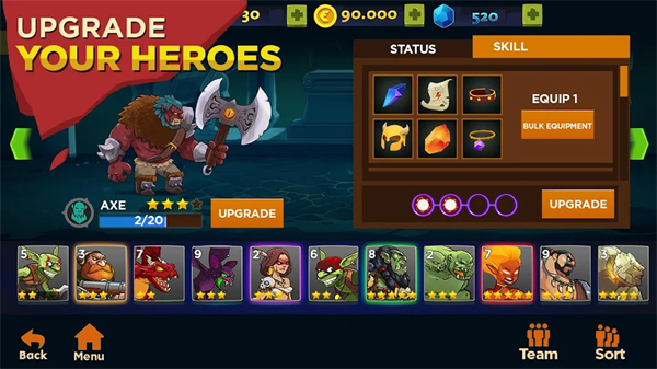 1、收集培养卡牌角色:通过任务或补给获取特色卡牌角色,梳理各角色能力定位,投入金币、经验道具等资源进行培养升级,提升其攻击等属性,解锁专属技能,打造核心战斗阵容。
