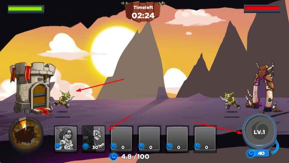 3、消耗资源提升角色等级,增强战力,更高效对抗敌方更强单位,摧毁敌方基地。