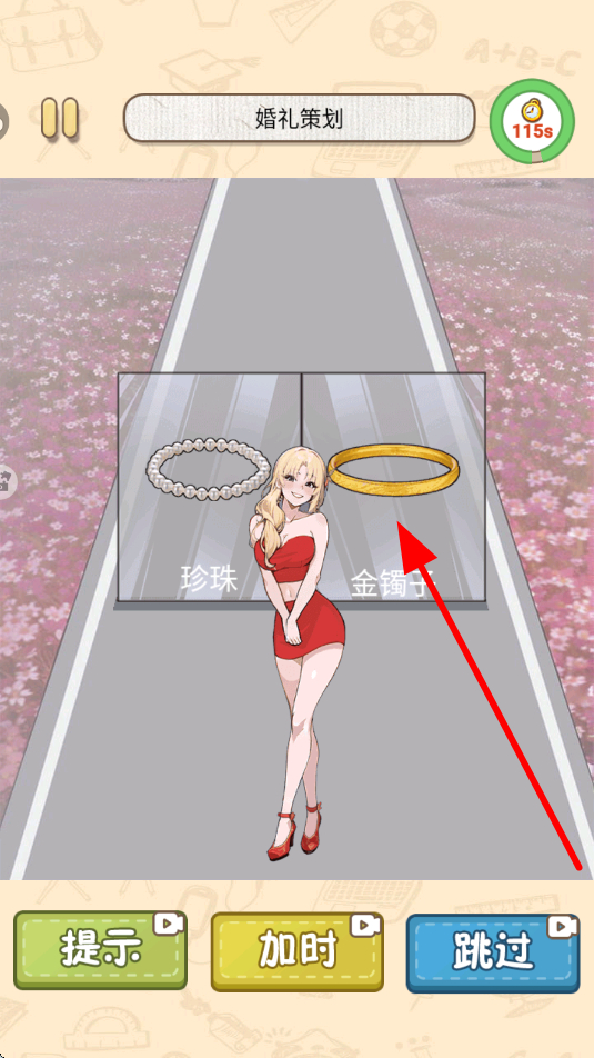 3、根据关卡主题,比如婚礼策划,会出现不同的物品选项,像珍珠、金镯子等,为角色挑选合适的物品,打造符合主题的形象。
