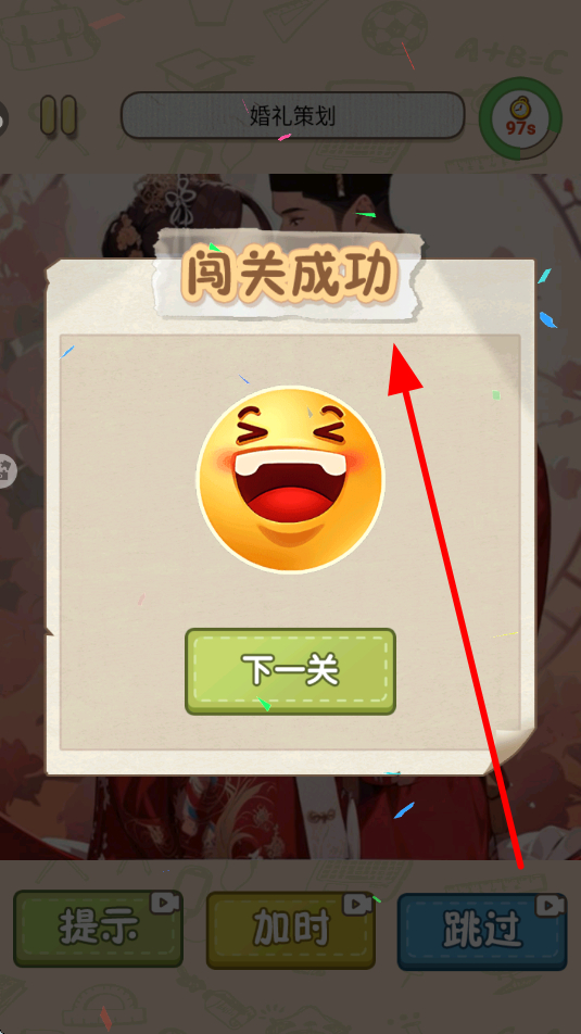 4、成功为角色挑选好物品,满足关卡要求后,就能完成闯关,屏幕会显示闯关成功,此时可点击下一关,继续挑战新的关卡。