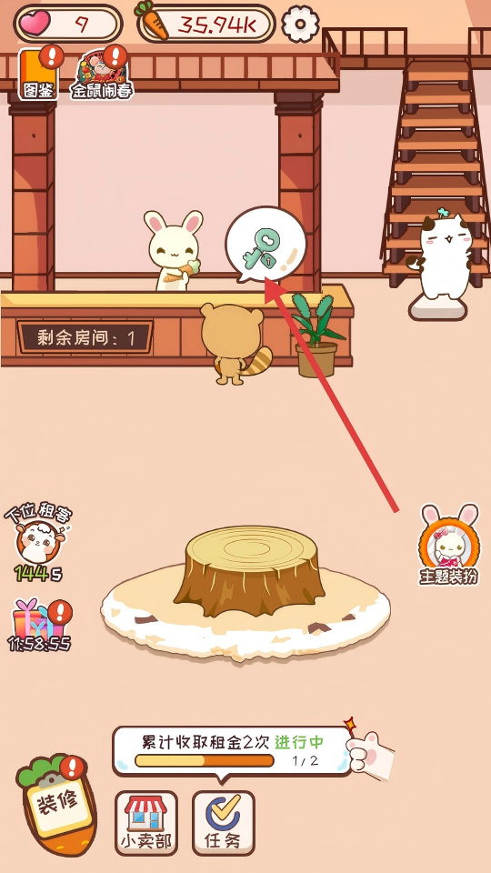 1、游戏内,当有新客人来到前台时会显示钥匙标识时,点击该标识,可让顾客住进旅馆。