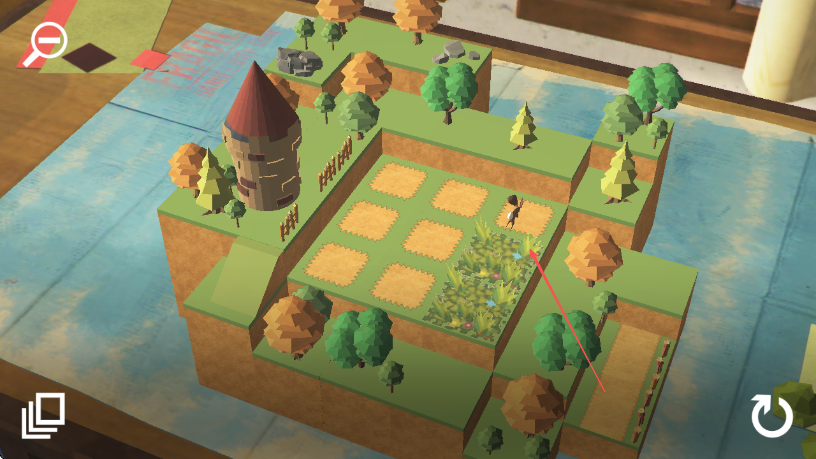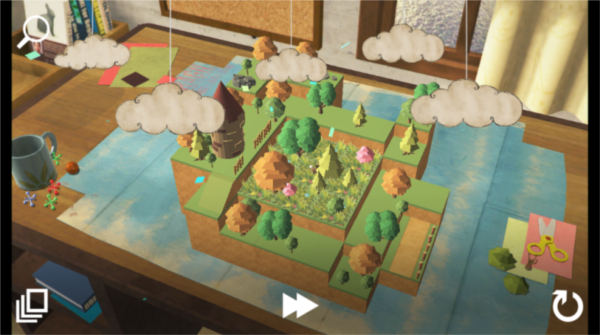 1、进入游戏,观察场景,操控角色在纸片搭建的森林世界中移动探索。
