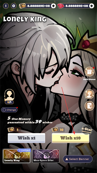 1、进入游戏后,直接拥有无限钻石和抽奖券,点击下方的十连抽直接进行抽取。