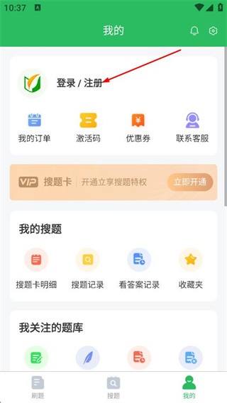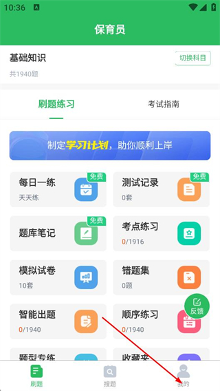 1、在保育员刷题页面,点击底部的我的选项,进入个人页面。