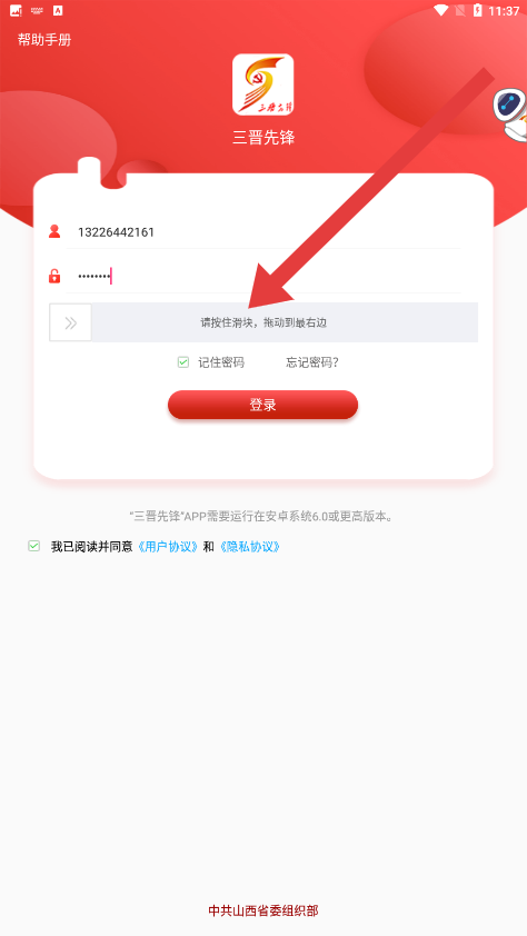 2、在输入完手机号和密码后,向右拖动模块完成验证操作。