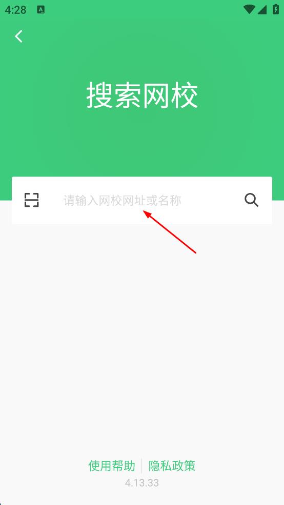 2、进入搜索网校界面,界面有搜索栏,提示输入网校网址或名称,点击搜索栏,准备输入内容。