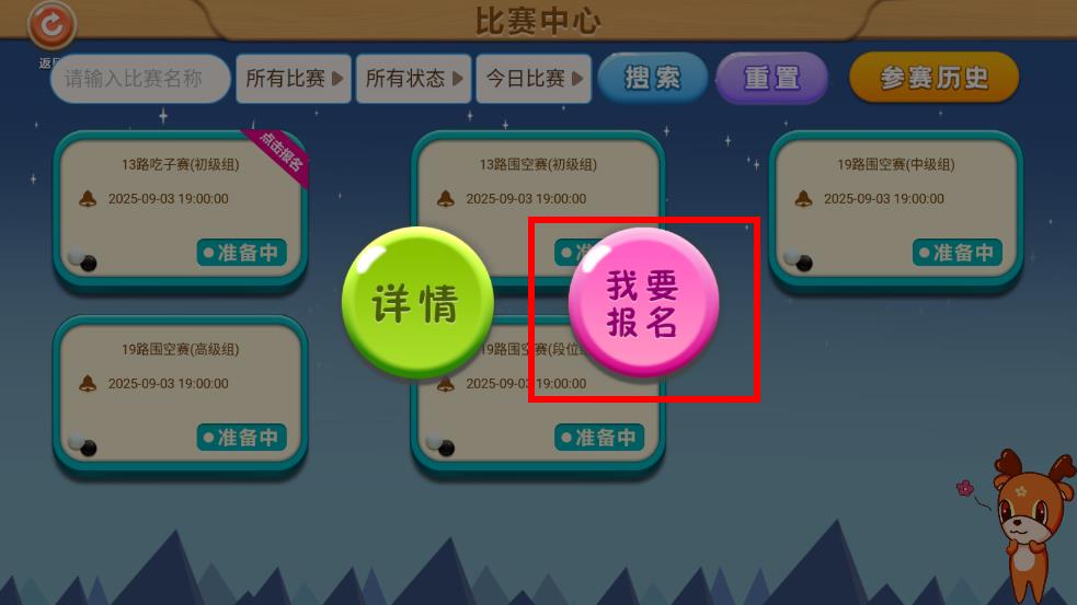 3、点击想要报名的比赛,在弹出的操作选项中,点击我要报名按钮,即可完成该比赛的报名操作,按照比赛时间准时参赛即可。