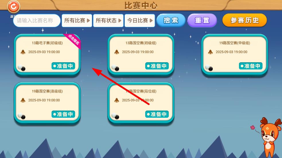 2、进入比赛中心页面后,浏览展示的各类比赛项目,找到你想要报名的比赛。