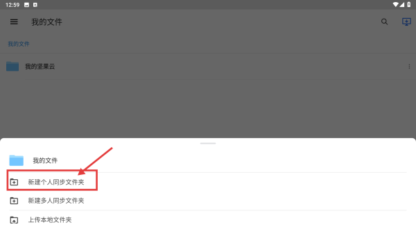 2、在弹出的选项中,选择新建个人同步文件夹,进入文件夹创建界面。