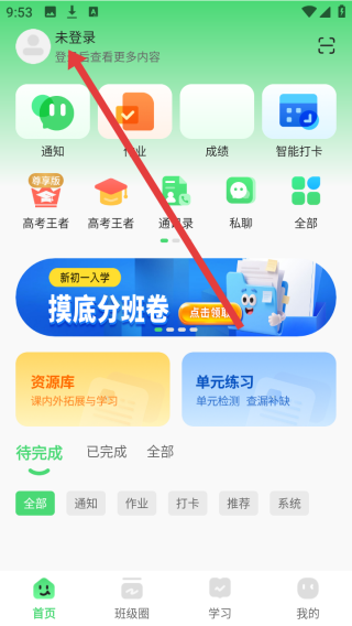 2、在河南校讯通app首页中,可以降低左上角未登录按钮,开始登录操作。