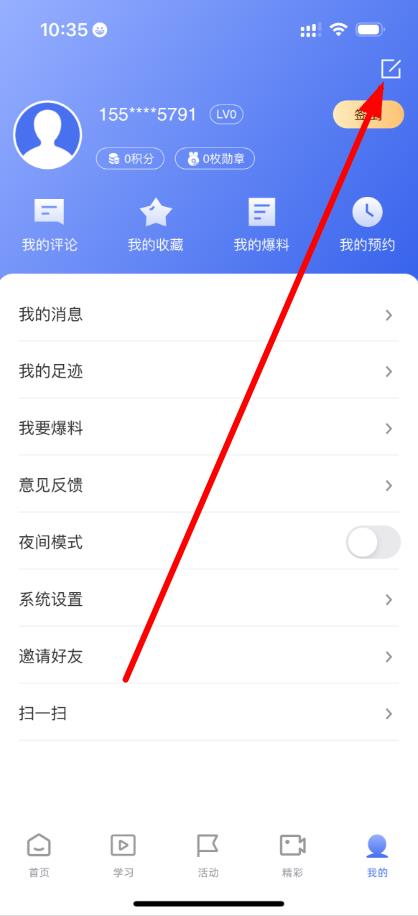 1、在个人页面右上角,点击类似对勾的编辑图标,进入个人资料页面。
