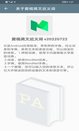 它是Android应用程序,带有押韵字典、同义词库和字典,具有文本到语音功能,可以阅读你的诗歌。