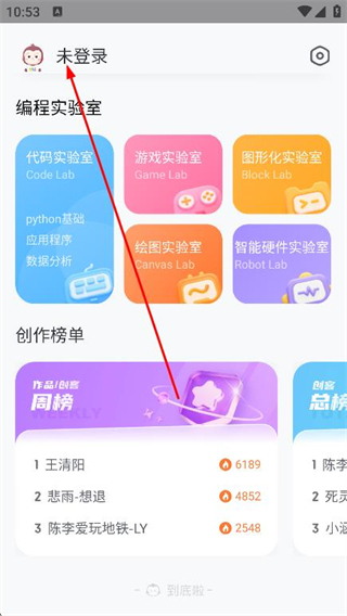 1、打开猿编程app,点击左上角未登录标识。