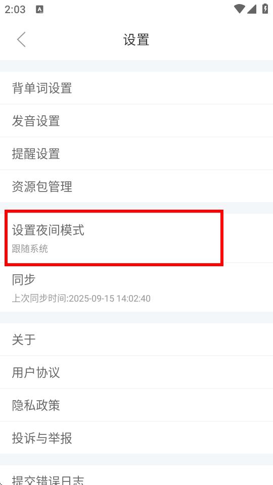 3、进入设置页面后,找到设置夜间模式选项并点击。