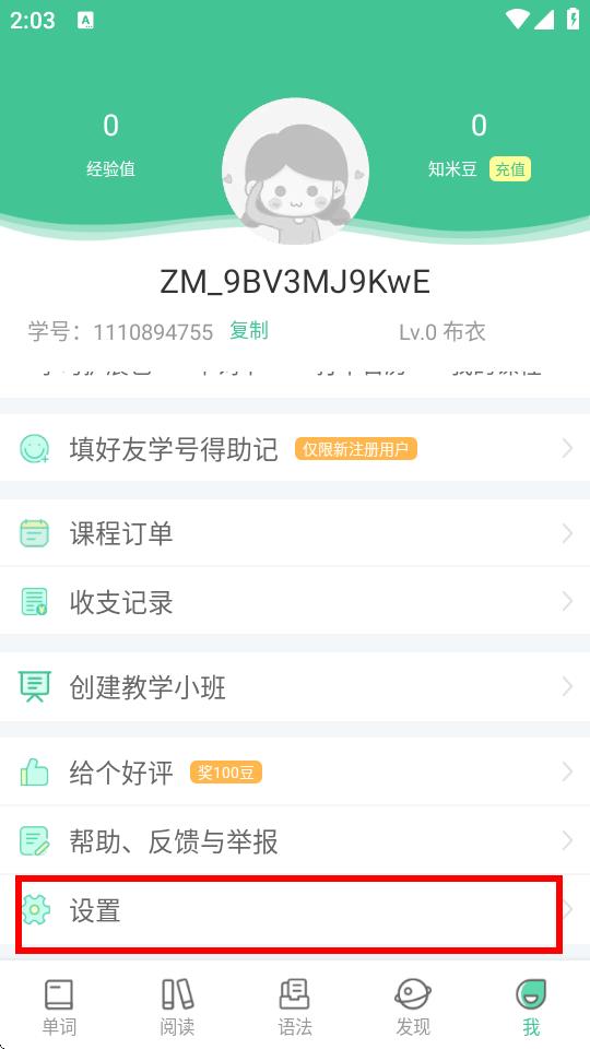 1、打开知米背单词app,进入主界面后点击底部导航栏中的我选项。
