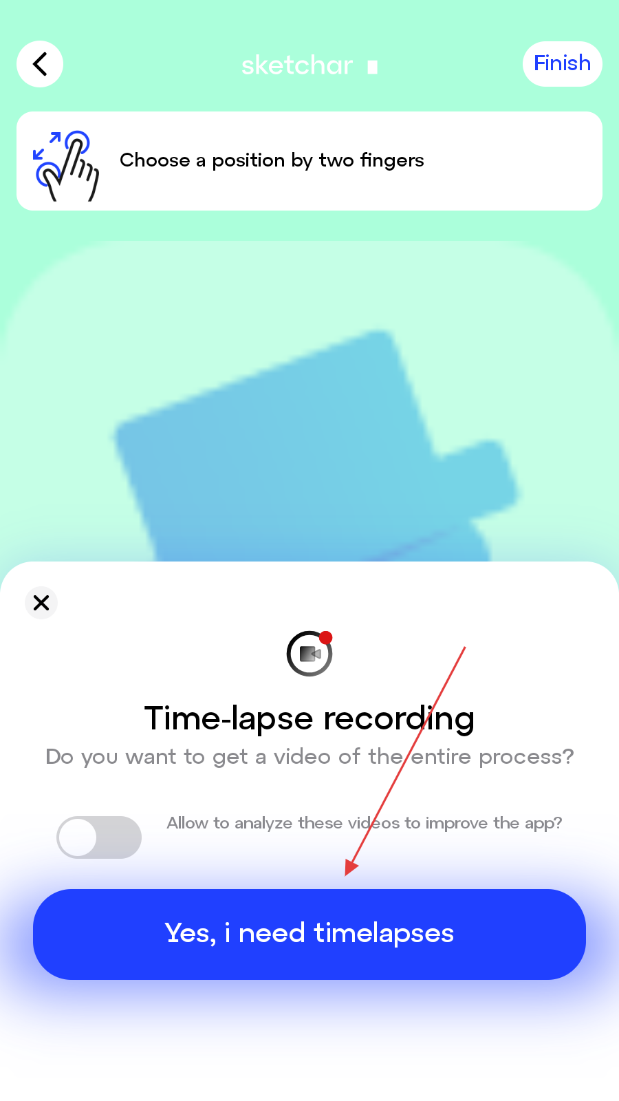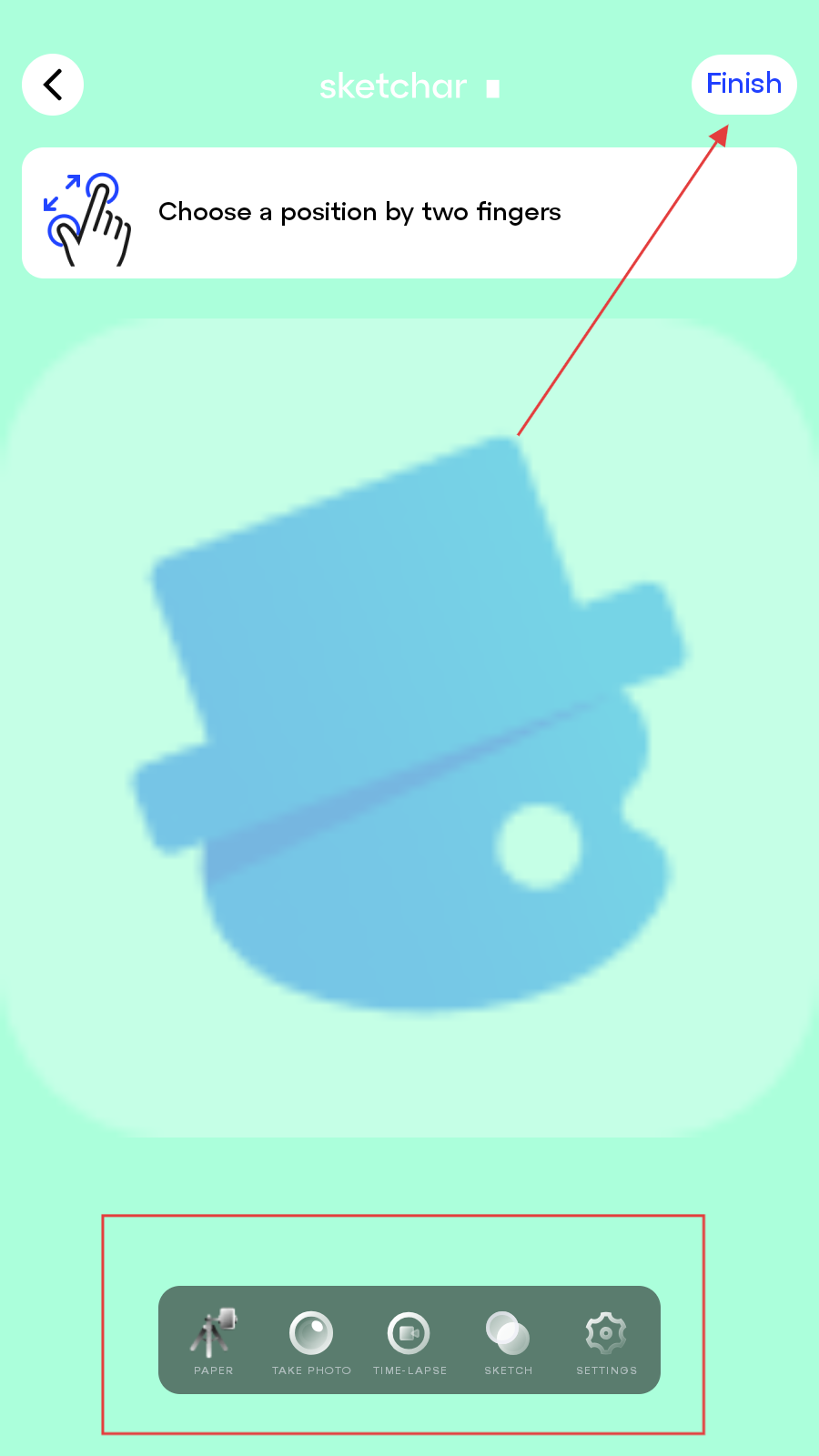 4、完成绘图相关设置或操作后,点击界面右上角的Finish按钮,结束当前AR绘图流程。
