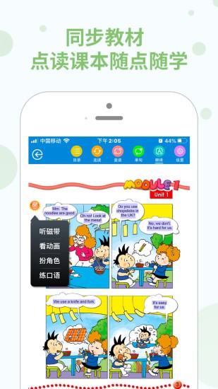 教学邦学习机在这里可以让学生们趣味学习英语,这里汇集了非常多的英语电子教材,让学生们在手机上就能随时随地学习英语,这里提供专业的点读服务,哪里不会点哪里,都是非常标准的发音。线上也准备了情景动画,大家可以看动画学英语,欢迎有需要的朋友下载使用!