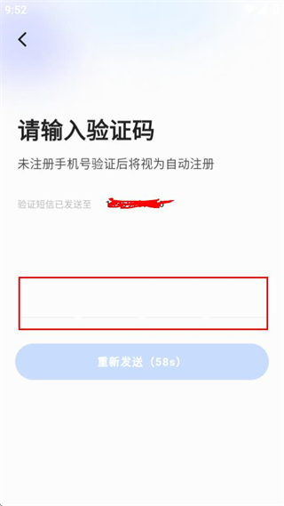 4、在验证码输入页面填写收到的验证码,完成账号登录操作。